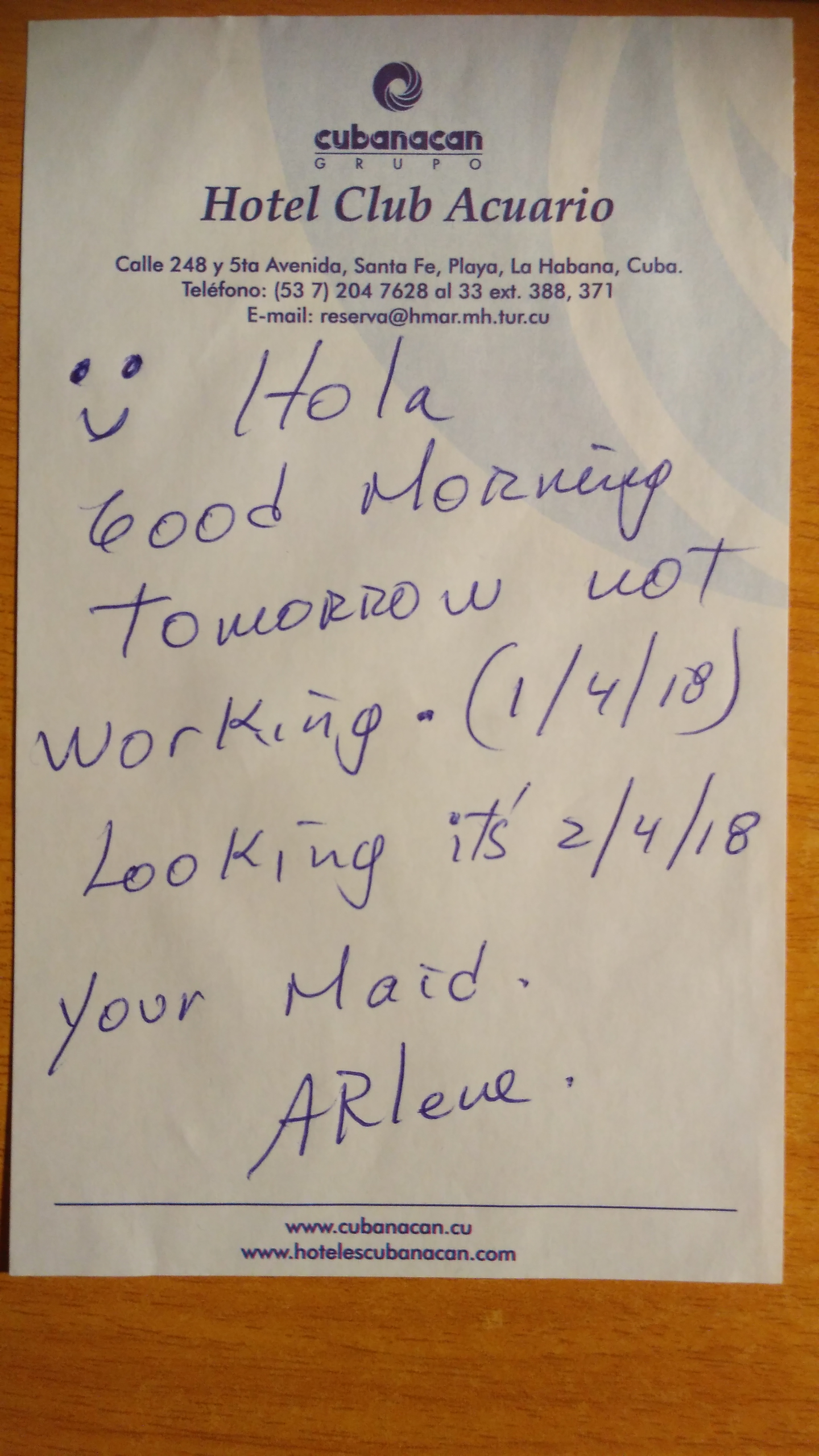 Персонал в отеле замечательный. О чем и свидетельствует эта записочка, оставленная нашей горничной