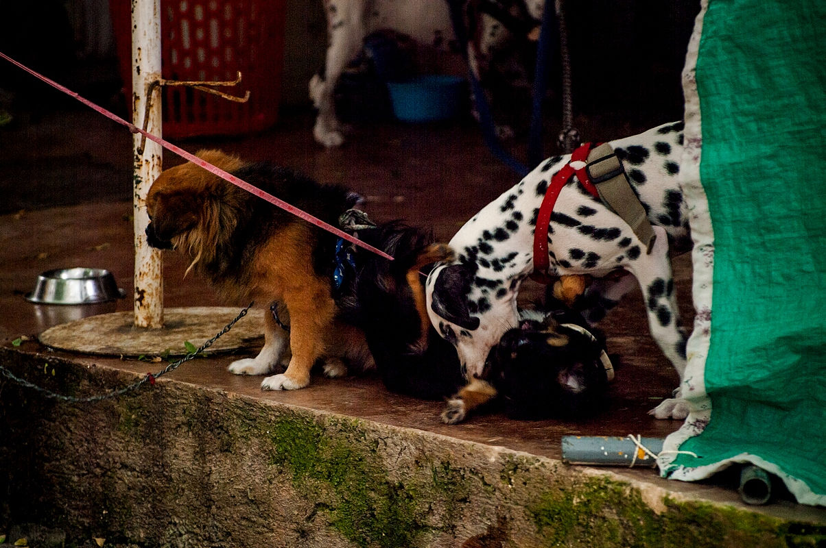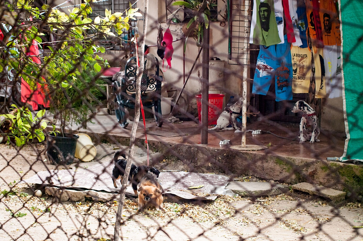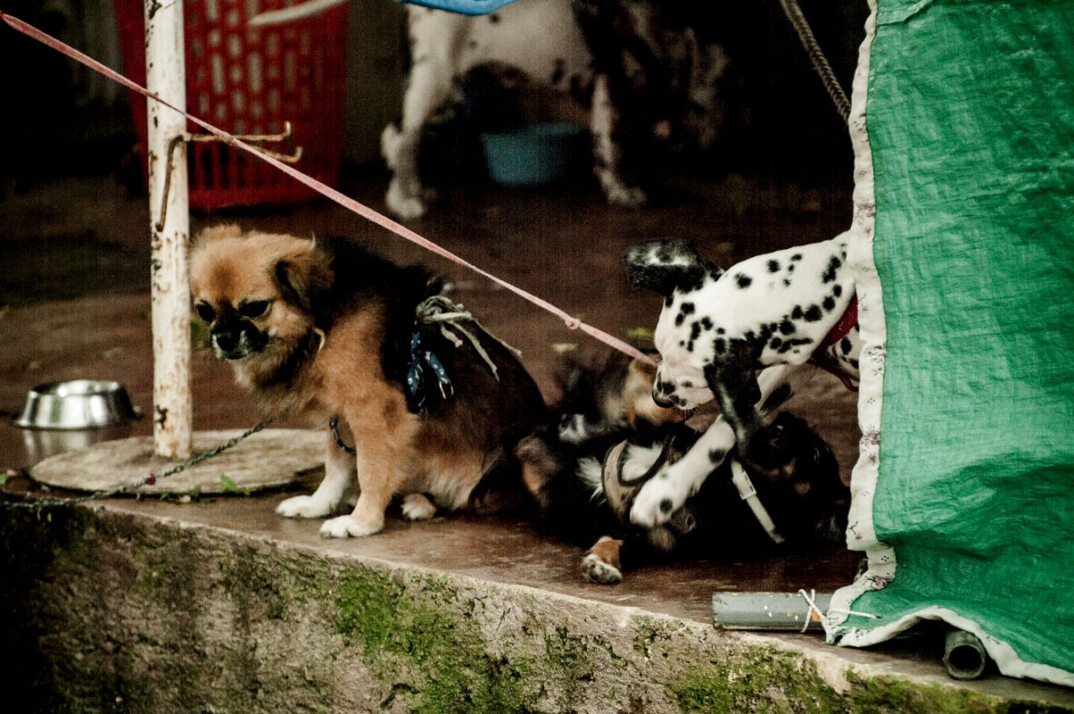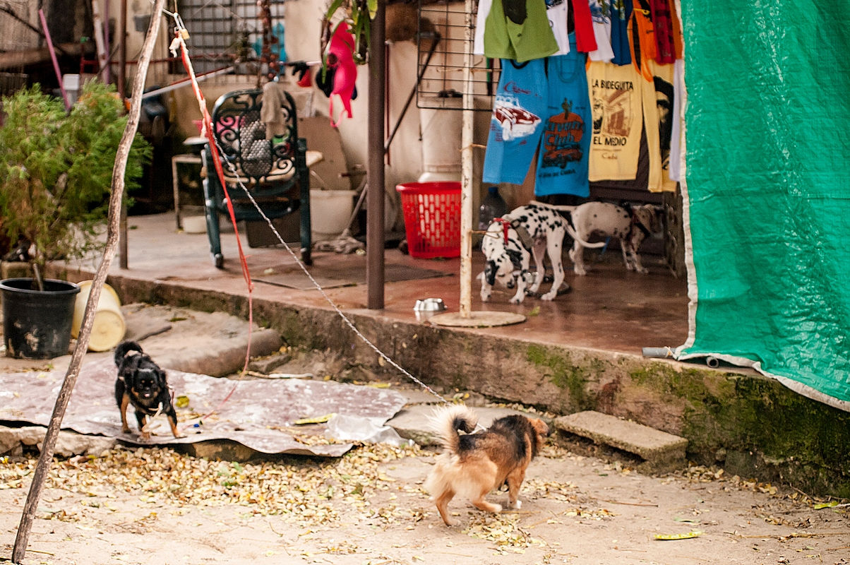 Да, это собачий домашний питомник. Внутренний двор, белье на веревке, товары на продажу и песики