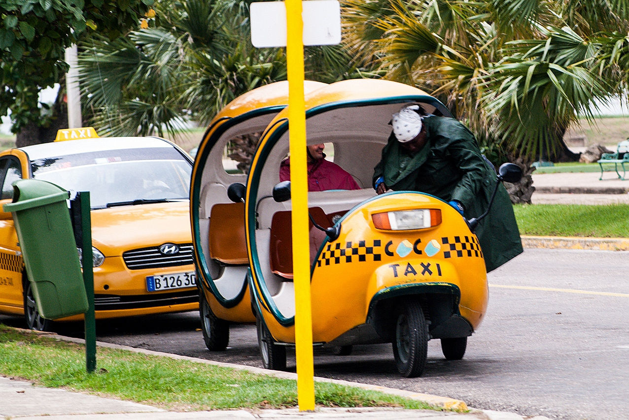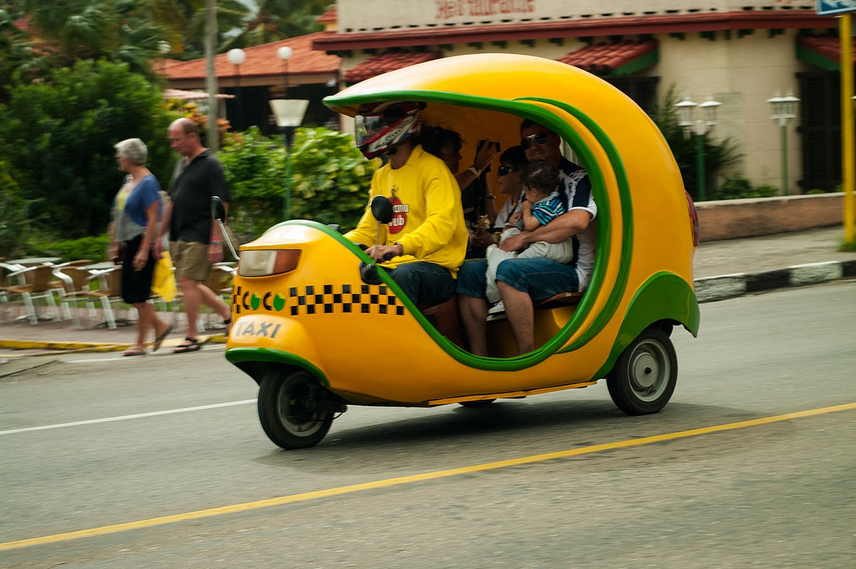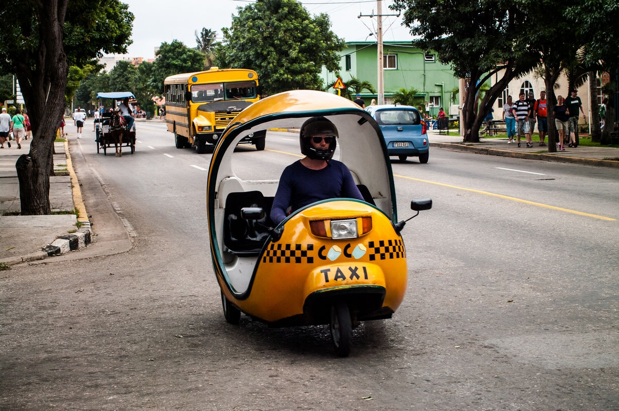 Водители coco-taxi, как правило, ездят в мотоциклетных шлемах