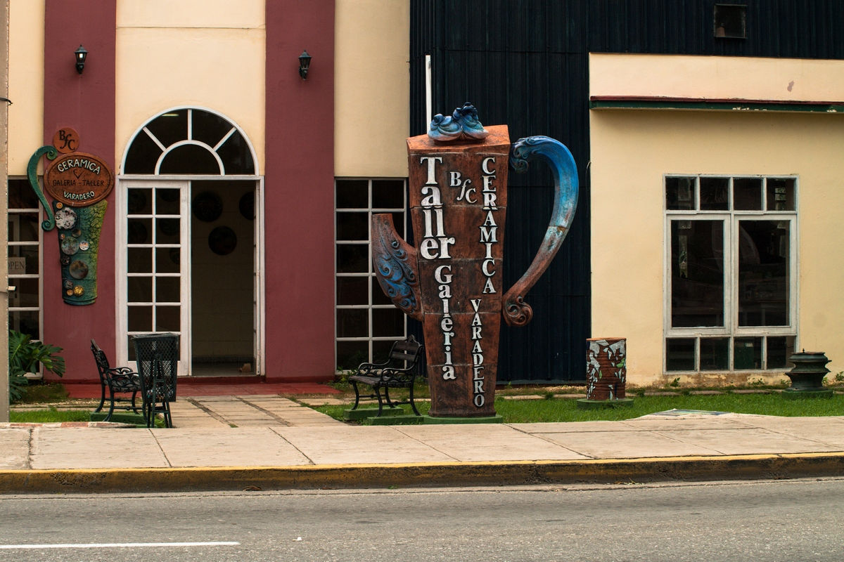 Обязательно зайдите в этот магазин керамики. Я, к сожалению, поехала в Варадеро неподготовленной и была не в курсе, что именно тут можно приобрести работы местных художников и гончаров. Снимок сделала, а внутрь не зашла:(А говорят, что именно здесь можно купить очень достойные подарки!